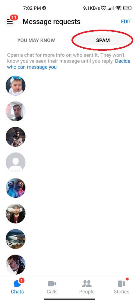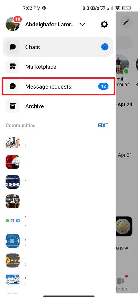 - Select Chat, followed by Message Requests