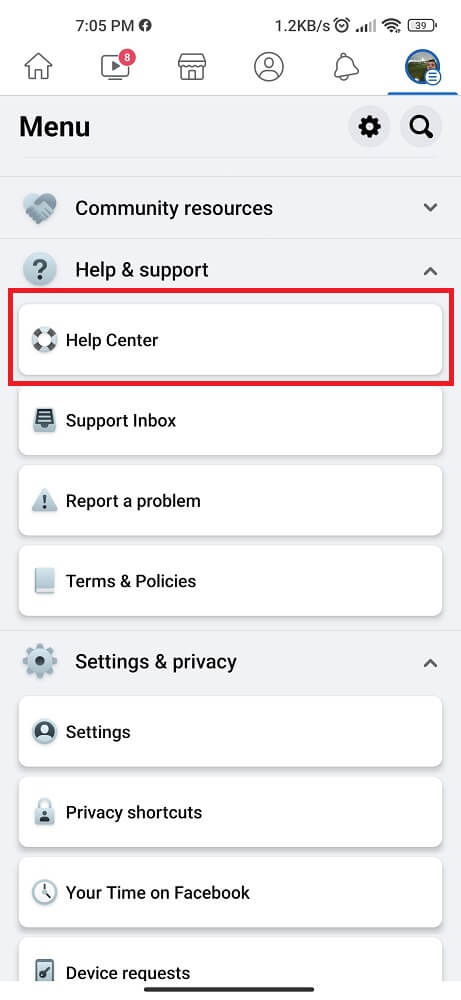 - Click on Settings and Privacy Pages