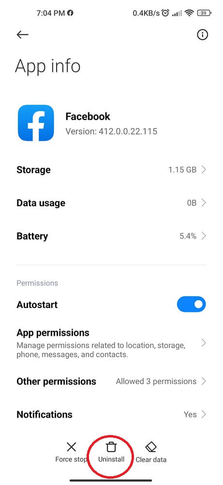 Reinstall the Facebook App