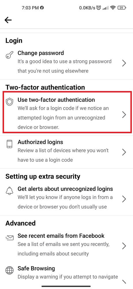 Check Facebook 2FA