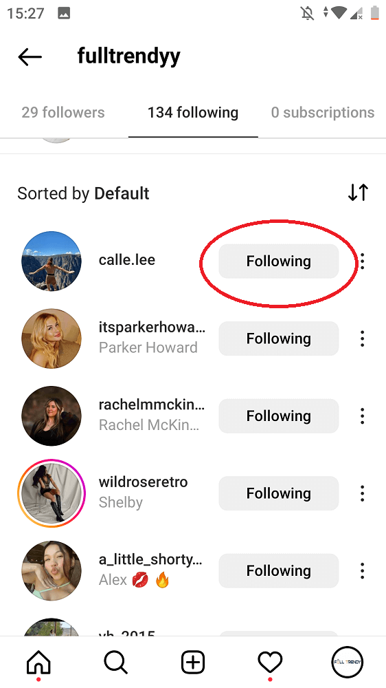 - Tap the “Following” button next to the account you wish to unfollow. It will change to an “Unfollow” button.